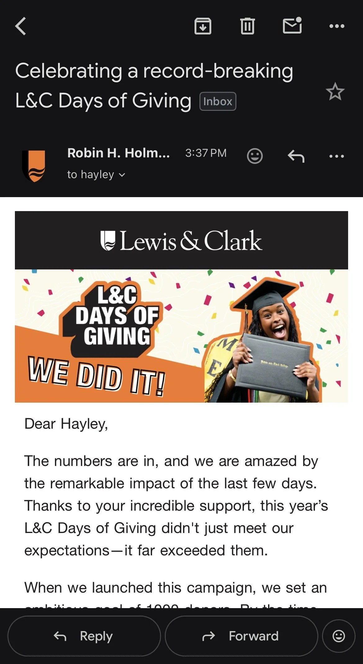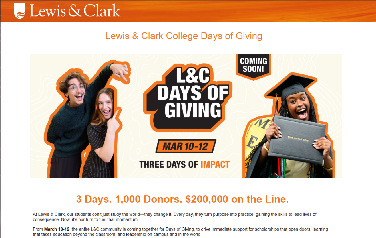 Visual Identity: Collaboratively developed a cohesive visual brand for the Day of Giving, ensuring a consistent "look and feel" across digital and print assets that balanced the College’s prestige with the high-energy urgency of a three-day challenge.